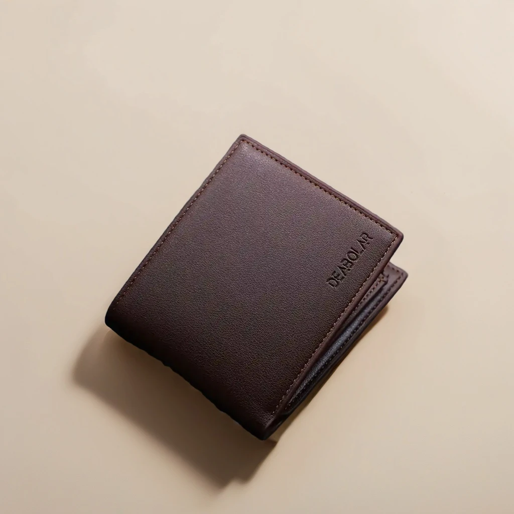 Introducing the DEABOLAR Minimalist Leather Wallet - a fusion of elegance and functionality. Crafted from premium smooth leather, this dark brown wallet embodies sophistication with its classic bi-fold design and embossed brand logo. Its minimalist aesthetics make it a perfect accessory for the modern individual who values both style and practicality. The wallet's sleek construction allows it to fit comfortably in any pocket, while offering ample space for your essential cards and cash. Ideal for daily use and various occasions, this wallet is designed for those who appreciate timeless elegance and streamlined convenience.